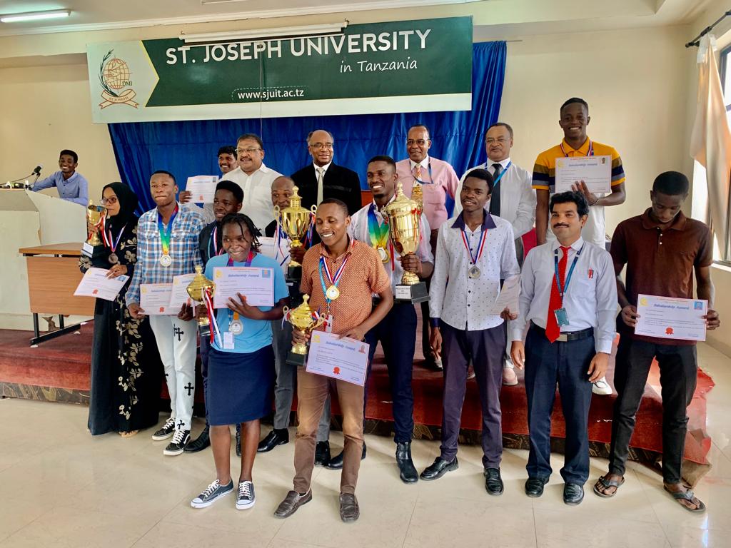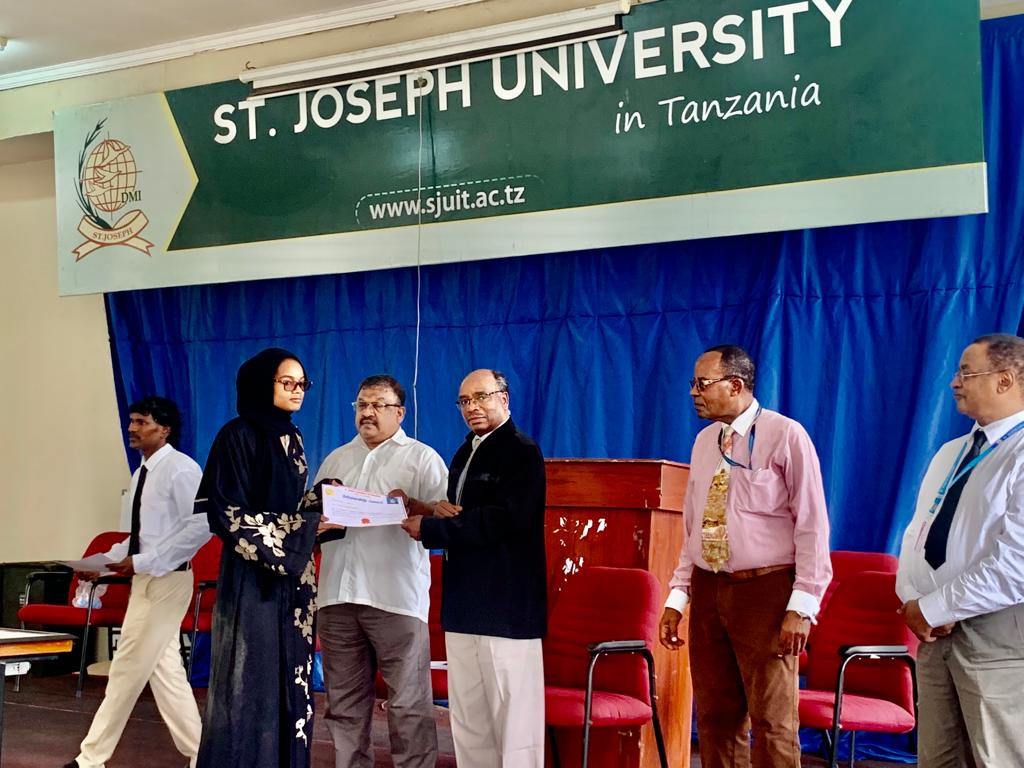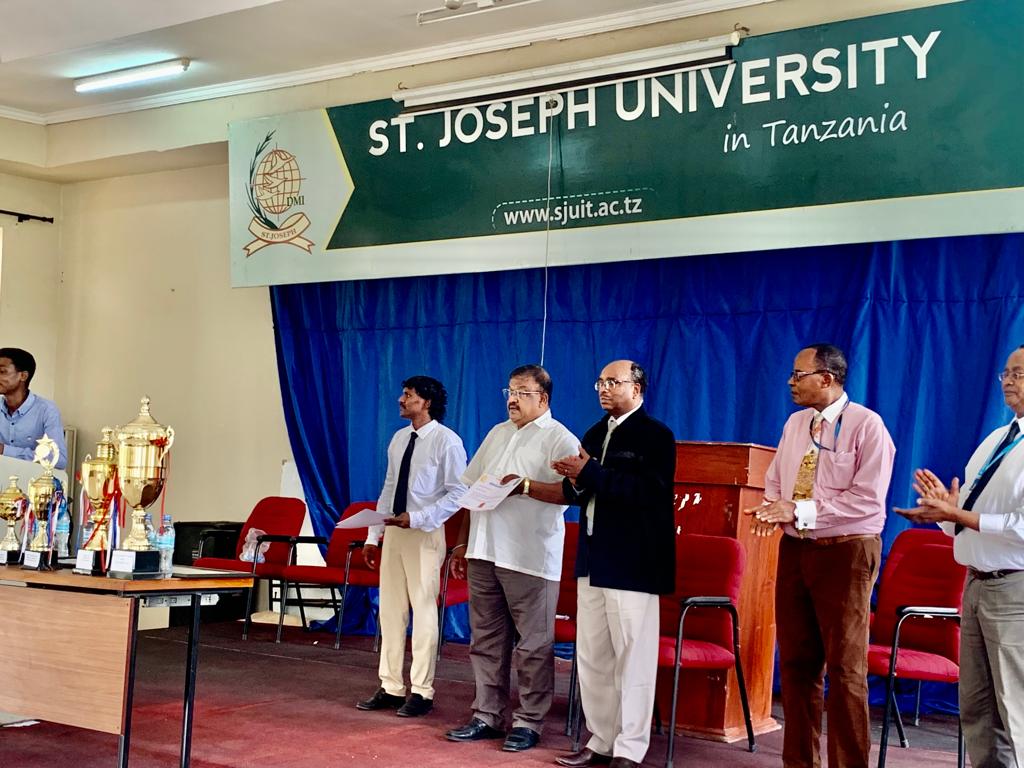 St Joseph University in Tanzania Students who participated on Tusa games and secure 4th position. National wise … Receiving their certificate of appreciation from the President University Council Dr. TX A. Ananth. The students were also awarded a 40% Sponsorship of their Studies. ✨