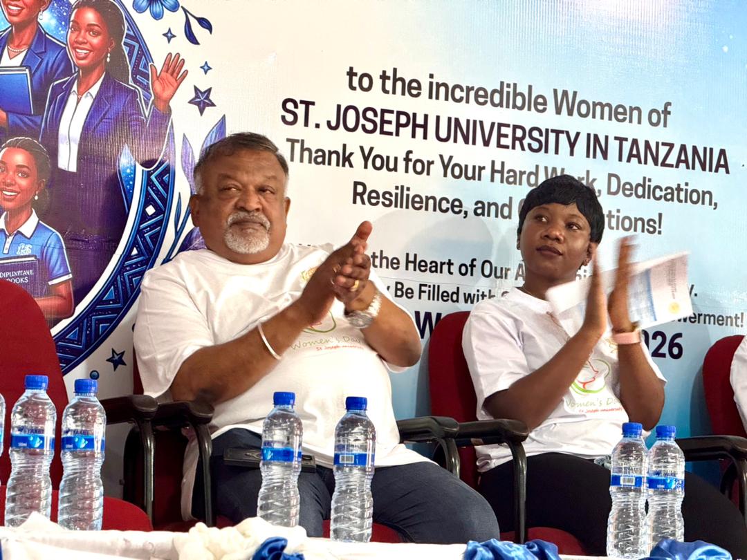 St. Joseph University in Tanzania (SJUIT) marked the climax of the International Womenโs Day 2026 celebrations on Friday, March 13, 2026, with great enthusiasm and unity. Dr. T. X. A. Ananth, President of the SJUIT Council, and the Vice Chancellor, Prof. Eliab Opiyo, joined female staff and students from all cadres and ranks in commemorating this important occasion. In their opening remarks, the President of the University Council and the Vice Chancellor emphasized the importance of promoting the rights, equality, and empowerment of women and girls, while recognizing the invaluable contributions of women within the University community and society at large.